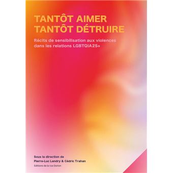 Tantôt aimer, tantôt détruire est un dispositif de recherche-création-intervention consacré au sujet épineux et encore tabou des violences dans les relations intimes et amoureuses LGBTQIA2S+. Ce projet polymorphe, mené par Pierre-Luc Landry et Cédric Trahan, témoigne du potentiel contrehégémonique d'une démarche collective alliant création littéraire, recherche scientifique et intervention communautaire. Tantôt aimer, tantôt détruire donne d'abord la parole à l'équipe scientifique, qui analyse l'invisibilisation de ces violences, éclipsées par l'hétéronormativité, le manque de connaissances et l'absence de services adaptés. Ensuite, dix-sept auteurices de la diversité sexuelle et de genre mobilisent les résultats de l'enquête en travail social à travers poésie, nouvelle, récit et essai. Enfin, l'ouvrage donne voix à deux organismes communautaires et met à disposition de toustes des ressources de prévention et de sensibilisation. Tantôt aimer, tantôt détruire propose une praxis de la création littéraire entendue comme démarche artistique individuelle et collective, intervention sociale, engagement politique et communautaire, ainsi que vecteur de diffusion des connaissances.[-]